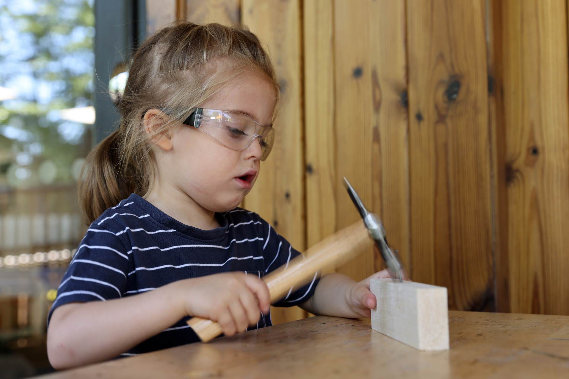 Woodwork and tool exploration, following research and professional development from Pete Moorhouse carefully supported by adults, helping children develop coordination, problem-solving skills and perseverance.