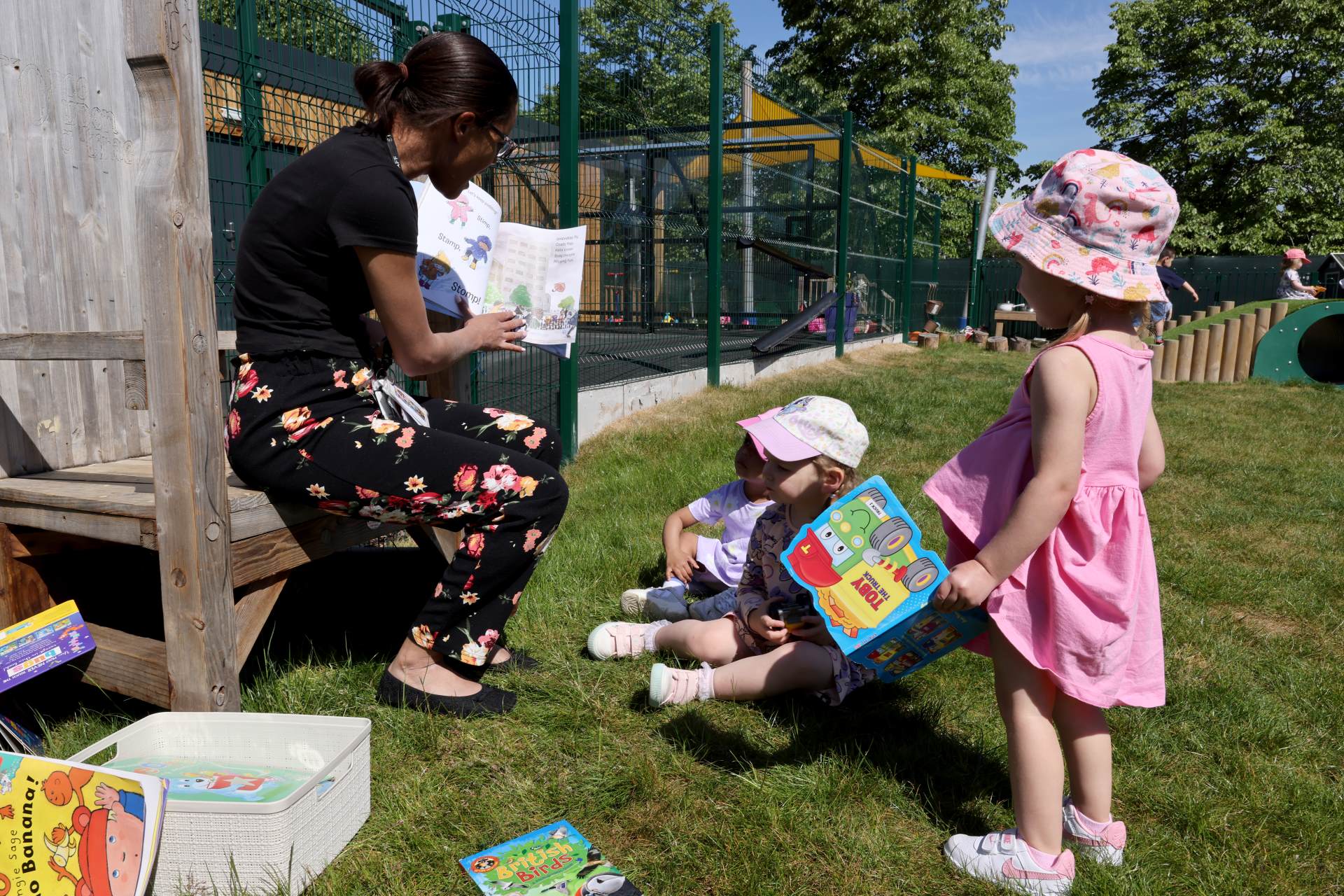 Adults model language, repeat words and share books daily, helping children feel secure and engaged.